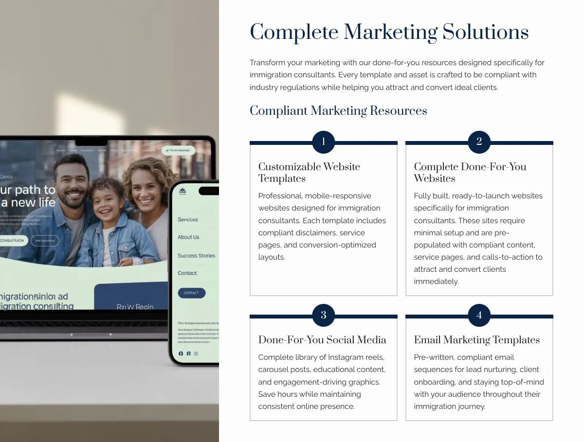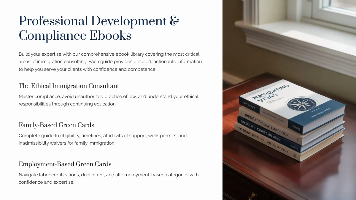 We're launching a comprehensive suite of resources designed exclusively for non-attorney immigration consultants. From compliance and ethics to marketing automation, our upcoming products will equip you with everything you need to run a successful, ethical, and efficient immigration consulting business.